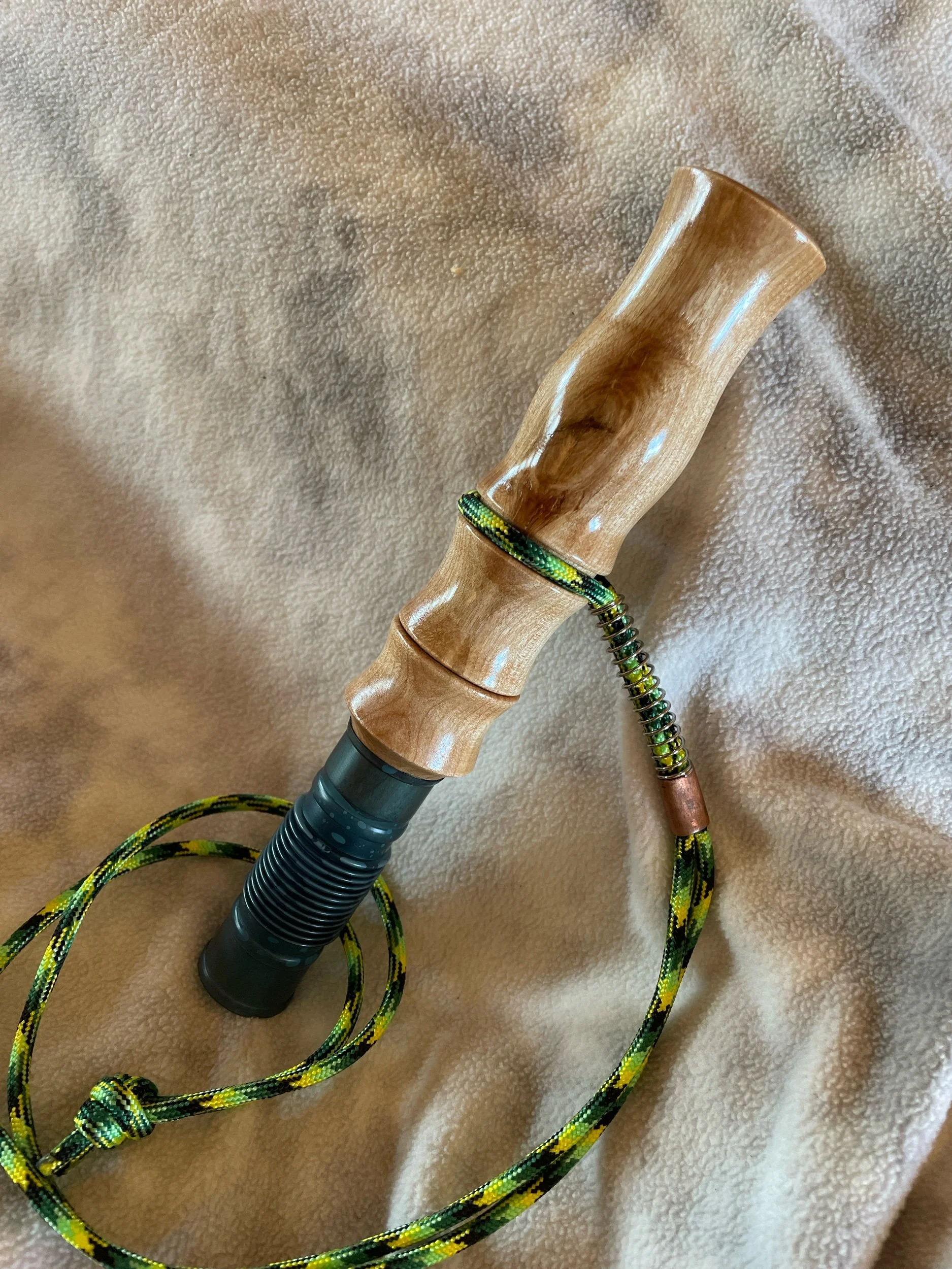 Really cool large Knot in this Maine Birch,I make them mostly from wood we get on our own land here in Maine and our Florida Hammock hunting camp. They all feature 5 tones from mature buck, woosy buck, doe, yearling and fawn bleat. Comes with a custom lanyard with a copper ferrel.