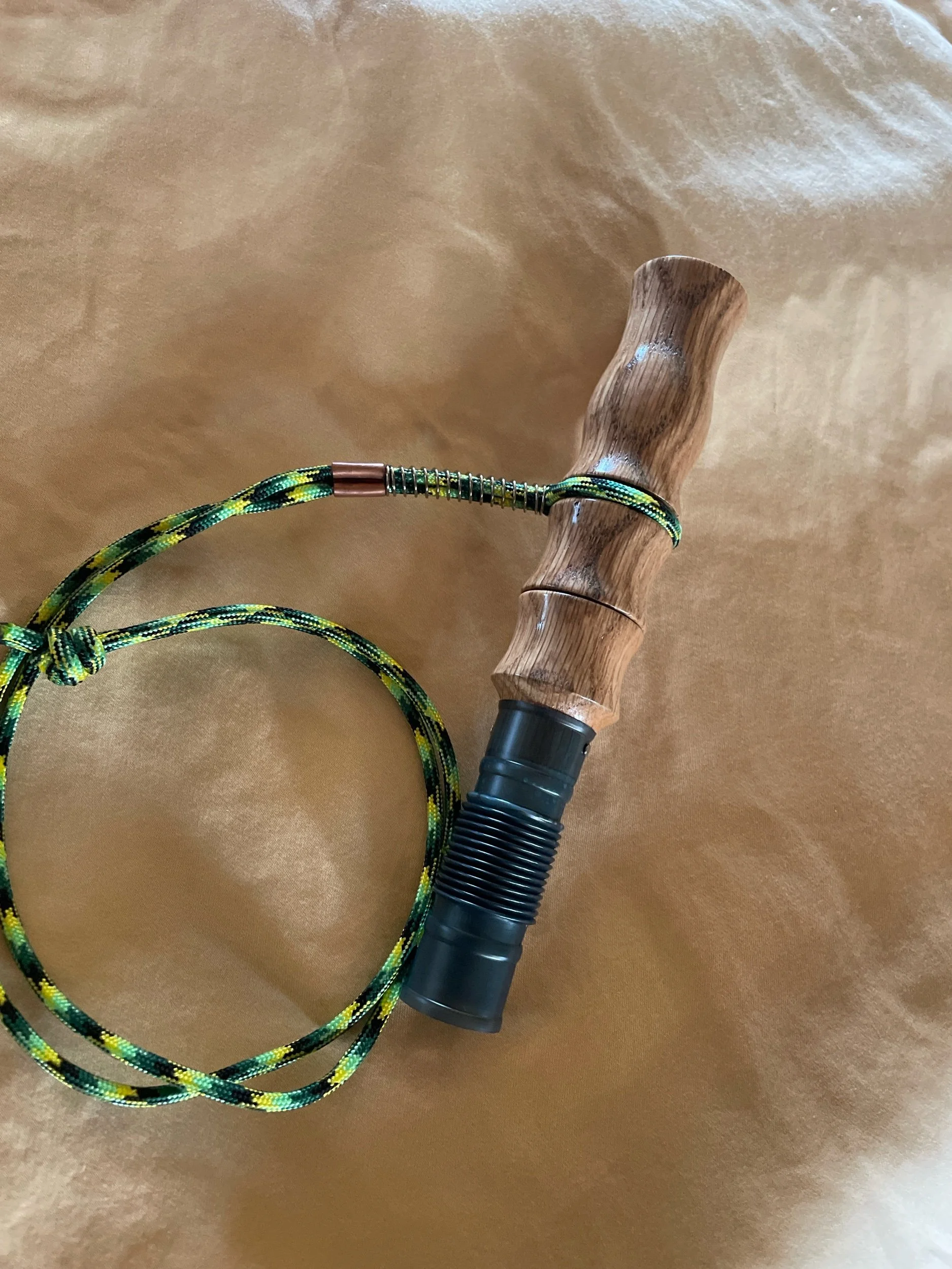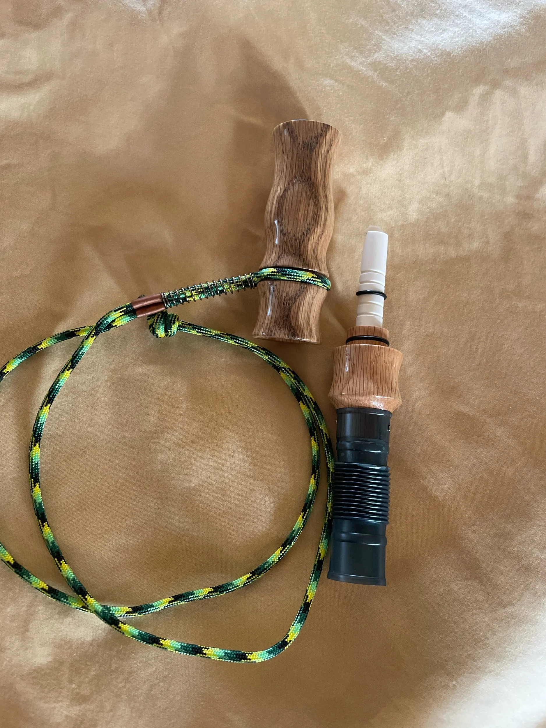 Beautiful chocolate Spalted Maine Oak from our own land here in Steuben. Hand turned. Each call features and easily adjustable reed with five tones ranging from mature buck, buck, doe, yearling and fawn bleat . Comes with a custom camo lanyard